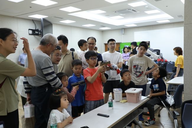 自动沿着线条行驶的小车吸引了小朋友们的注意。他们好奇地观察小车如何沿着黑色线条穿梭前行,并在志愿者的耐心解释下,了解了小车的工作原理。孩子们还尝试自己操控小车,通过亲身体验,增强了对科学原理的理解和兴趣。