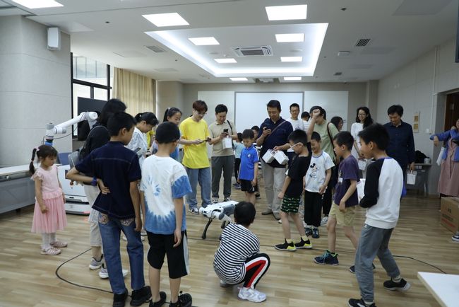灵活有趣的机器狗吸引了众多目光。大小朋友齐齐被灵活有趣的机器狗吸引了注意力。志愿者耐心讲解并使用遥控器控制机器狗做出不同的动作,包括前进、后退、翻跟头、坐下和握手,引得大家哄笑一堂。这个活动让参与者们充分体验了科技的乐趣,也展现了机器狗的灵活多变,为现场增添了一份欢乐和惊喜。