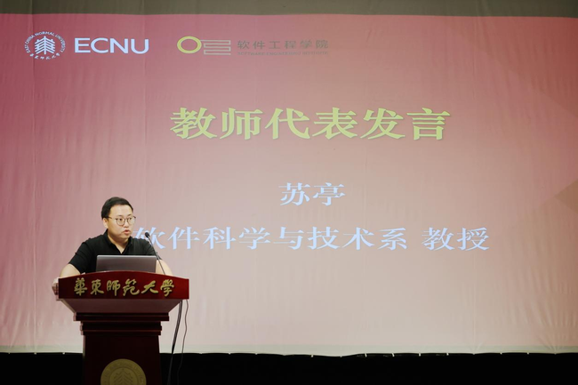 公司教师代表苏亭首先发言。他以老师与学长的身份,向同学们发出了亲切叮咛。从逐步明确自己的目标、学会积极主动、应对困难与挫折、给予别人帮助、平衡学习与生活几个角度向同学们给出了自己的建议,展现出学院教师对新生们诚挚的欢迎。