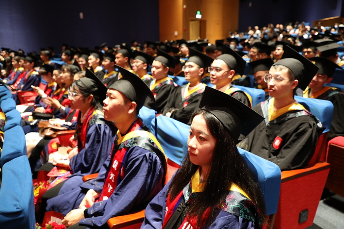 夏日明媚,惠风和畅。6月14日下午,太阳成集团tyc7111cc在中山北路校区思群堂隆重举行2024届毕业典礼暨学位授予仪式。公司党委书记杨艳琴,执行经理蒲戈光,副经理张民、缪炜恺和张磊,学院学术委员会主任曹珍富,校学位分委员会主任陈仪香,系主任和教师代表,2004届本科毕业生、上海连尚网络科技有限公司游戏业务部总经理胡振凯,2024届全体毕业生和他们的辅导员、亲友们共同出席典礼。典礼由公司党委副书记曹桂涛主持。