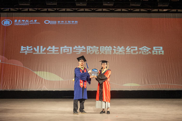 毕业之际,毕业班的同学们为学院准备了一份礼物,表达了对即将成立的滴水湖国际软件学院的祝福,祝愿学院在新的历史时刻逐浪前行、扬帆启航,开启新一轮卓越人才培养和科技创新的征途。公司党委书记杨艳琴上台接受毕业生的这份饱含巧思和心意的祝福。