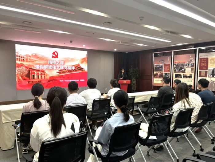 中共一大会址,是中国共产党的诞生地。会址所在的“树德里”弄堂内,由中共一大纪念馆红色讲师团带来的“树德讲堂”正在开讲。支部党员认真聆听了《精神之源一一带你解读伟大建党精神》专题党课,通过珍贵的影像资料与革命英烈事迹,深入学习建党精神的形成历史与丰富内涵,从伟大建党精神中汲取波澜壮阔的精神力量。