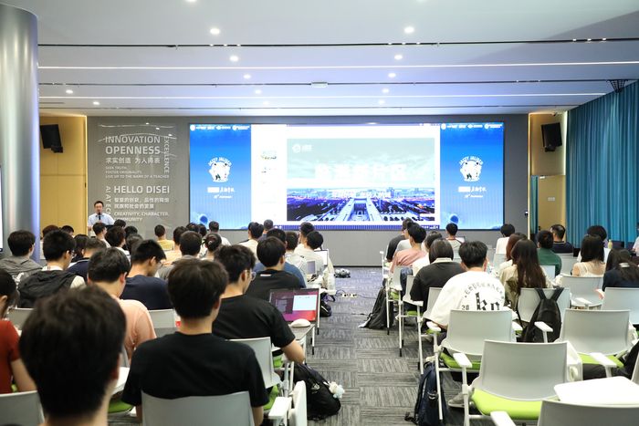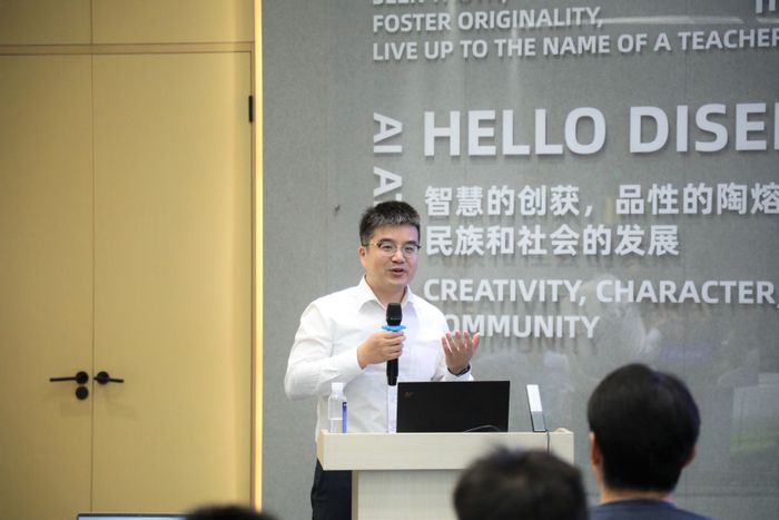 临港管委会高科处副处长傅张杰对临港新片区的历史、规划、政策等做了宣介,重点介绍了人工智能产业发展情况,并热烈欢迎参会嘉宾、师生在临港就业、创业、安家。