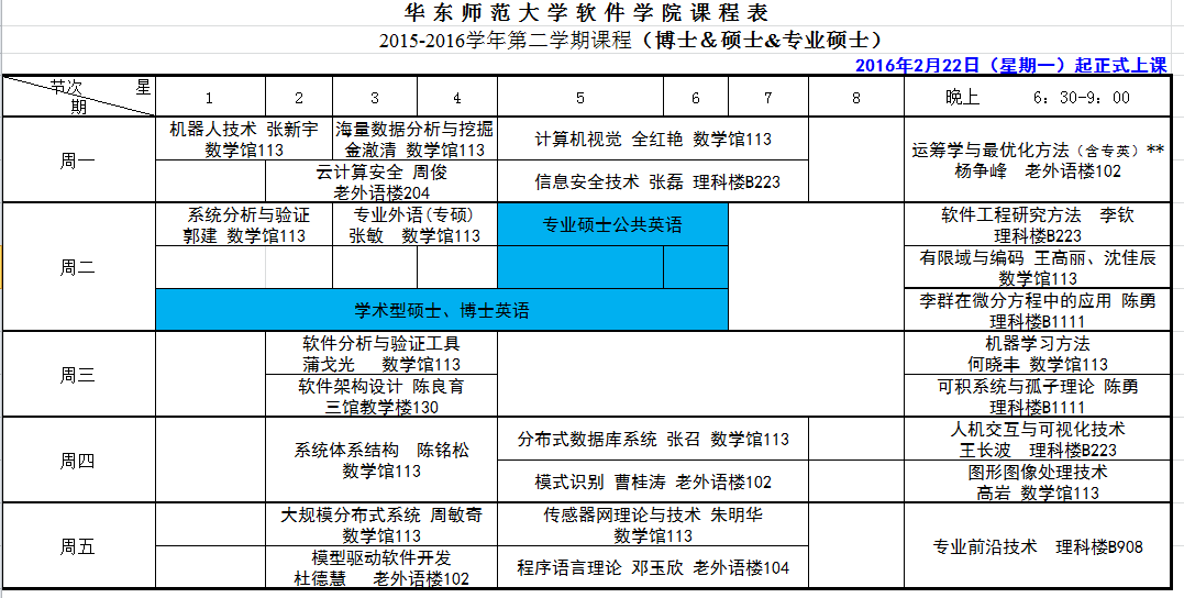 2015-2016第二学期研究生课程安排详见下表或附件。
