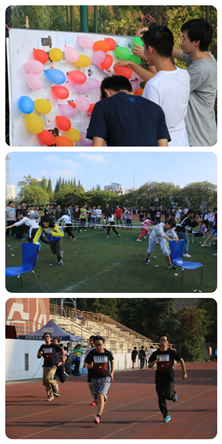在绿茵场上进行着的更有各类有趣有爱的团体项目。障碍跑趣味十足,躲避球欢乐无限,飞镖达人、我要那键盘、农夫山泉等项目把机会分给每个软院人,让运动的快乐沁入所有人的心中,“阳光伙伴”绑腿赛跑拉近你我之间的距离,满载着歌声与欢笑,向着夕阳,并肩奔跑。