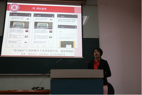 首先,本期党校秘书叶林娟分别从党校的基本情况、课程设置、执行情况、评教和考核等方面对本期党校整体执行情况作了汇报,对本次党校整体宣传、执行情况作了经验总结,提出特色以及有待改进的方面。