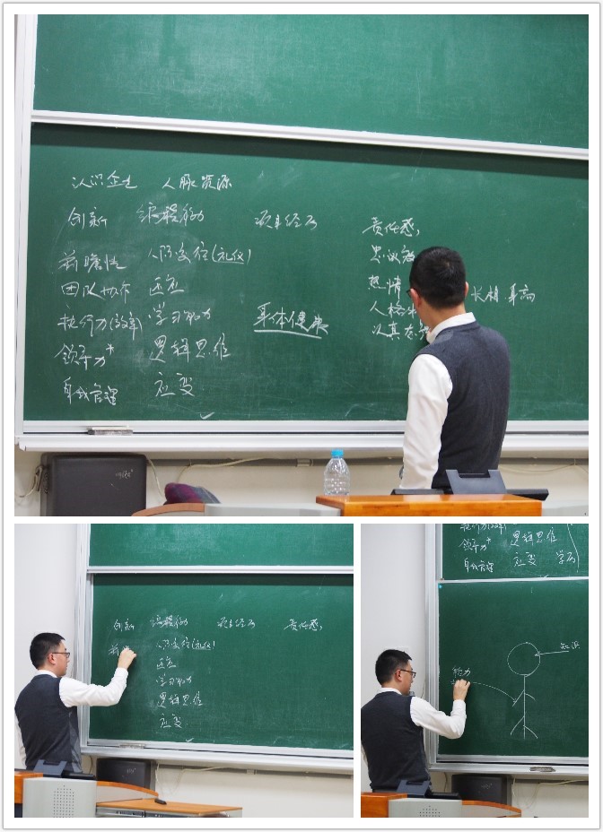孙宇为公司软件工程专业第一届毕业生,在校期间曾担任团委副书记,目前担任为复地集团下辖复地学员人才发展专业助理总监、全球人才管理咨询机构DD认证讲师。离讲座开始还有半个多小时,孙宇学长就早早地到了教室。讲座伊始,主讲人提出了几个关于时间管理的问题供团校成员思考和讨论,随后又抛出“你认为公司招人最看重哪些能力”让同学进行讨论。开场讨论迅速将同学的注意力集中到主题中,并引发了大家深刻思考。之后,主讲人从所在公司的角度详细介绍了人才任用标准,让同学们更清晰地明确了未来努力的方向。