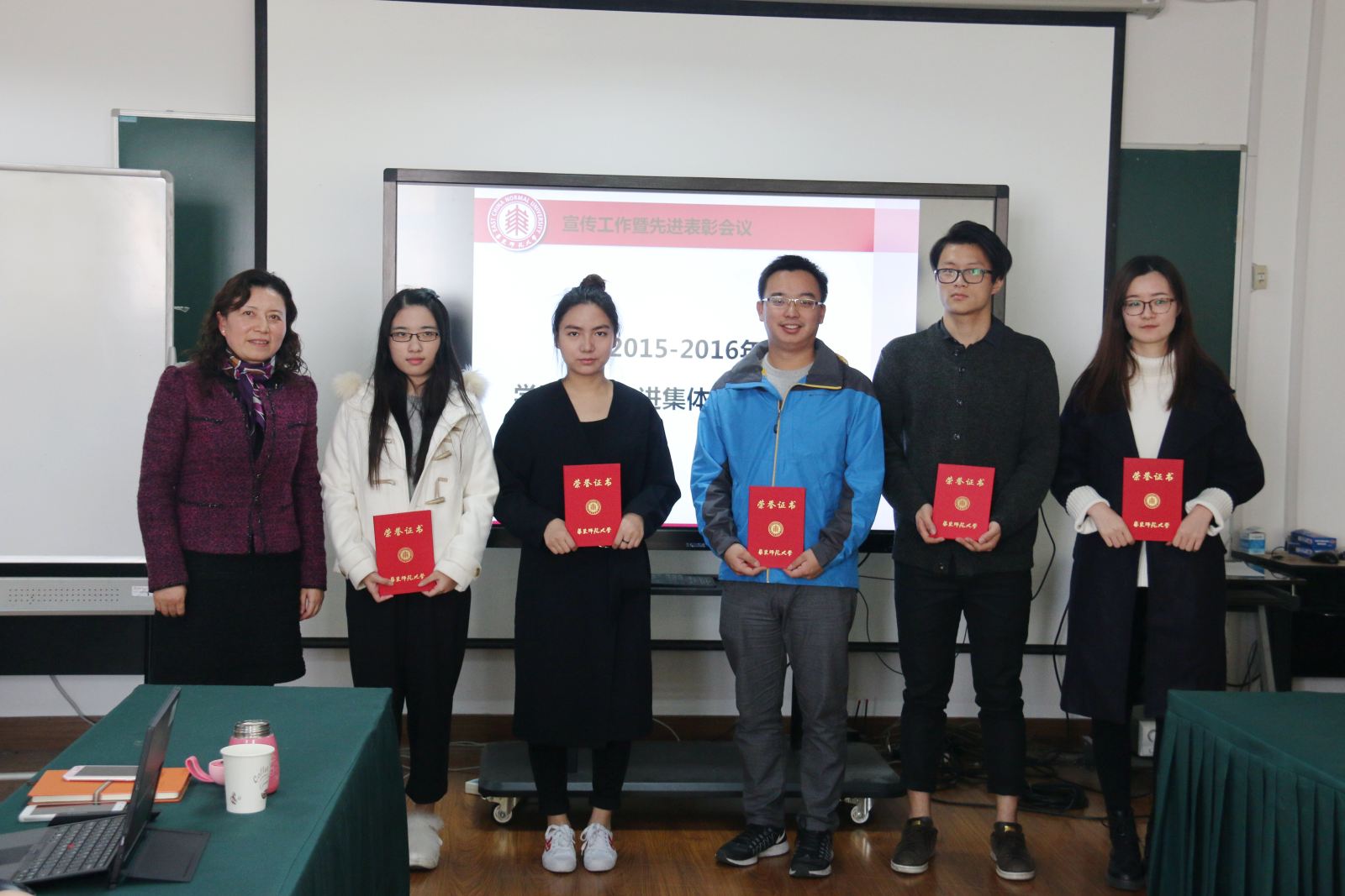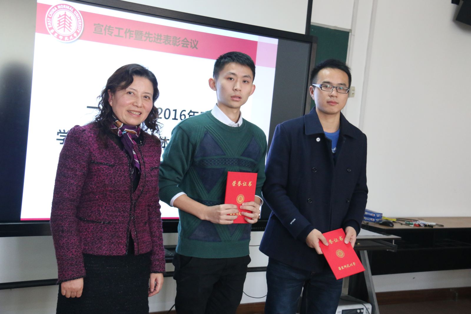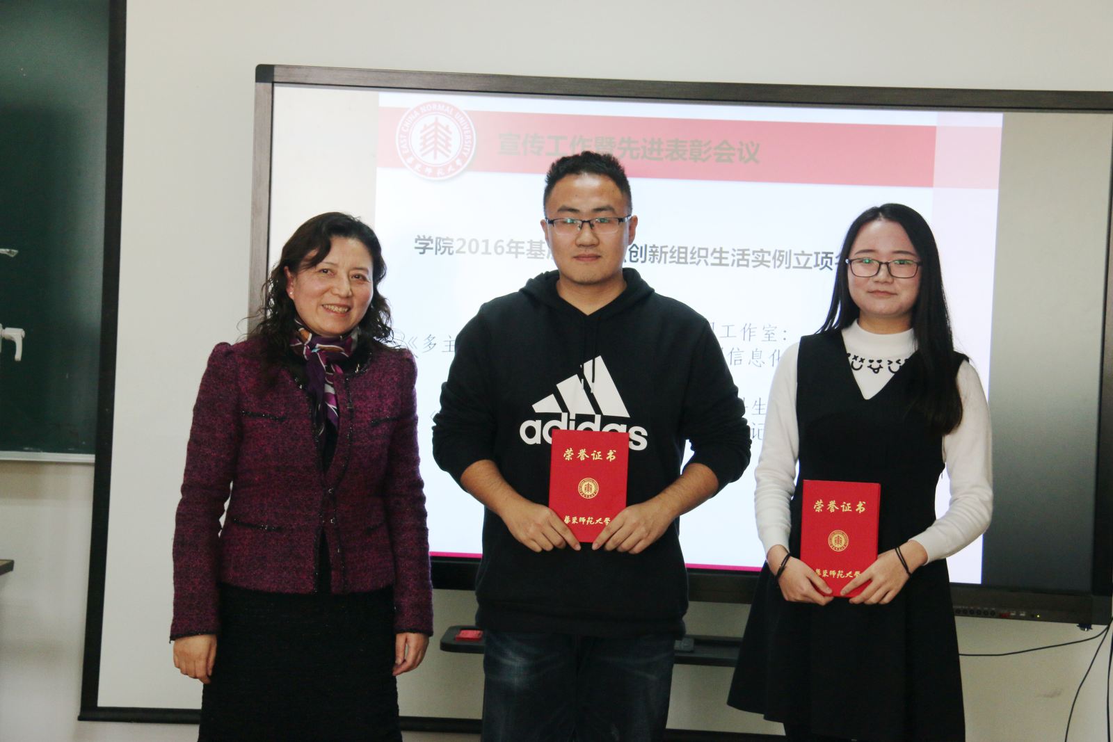 洪燕宣读了公司党委表彰决定,由李恺书记为获奖个人和集体颁发荣誉证书。朱丹等五位同志荣获宣传工作先进个人,学院团学联及研究生会信宣中心荣获宣传工作先进集体。另有两个员工支部项目获学院2016年基层党组织创新组织生活实例立项。