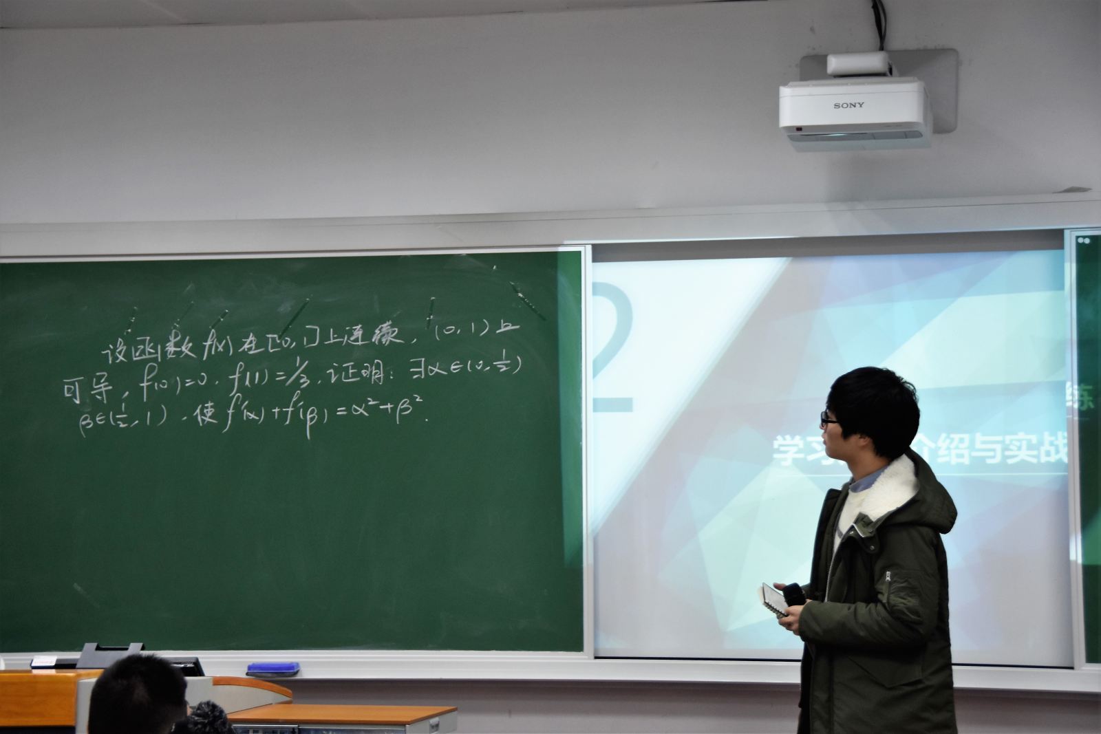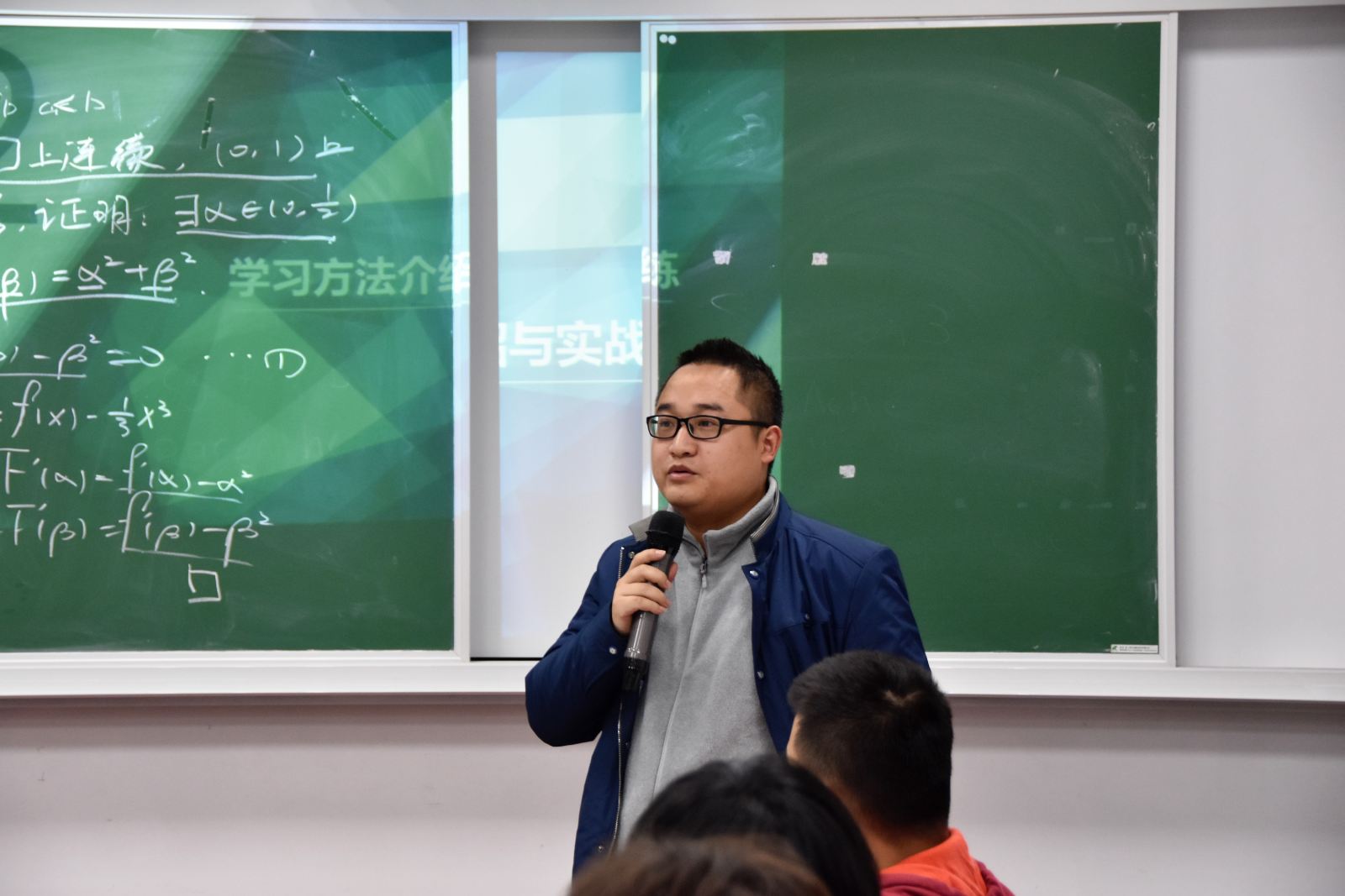 沙龙伊始,三位同学逐一上台讲分享了各自学习数学的方法。曹威杰同学结合一个证明题目,对他的数学学习方法“三步走”策略进行详细解说;陈杰同学提出老员工要学会独立思考、学数学要仔细理解书本知识和认真做课后习题、理论要和实践相结合;周华驰同学以高数课后的一个习题为例介绍了数学计算的一种算法。