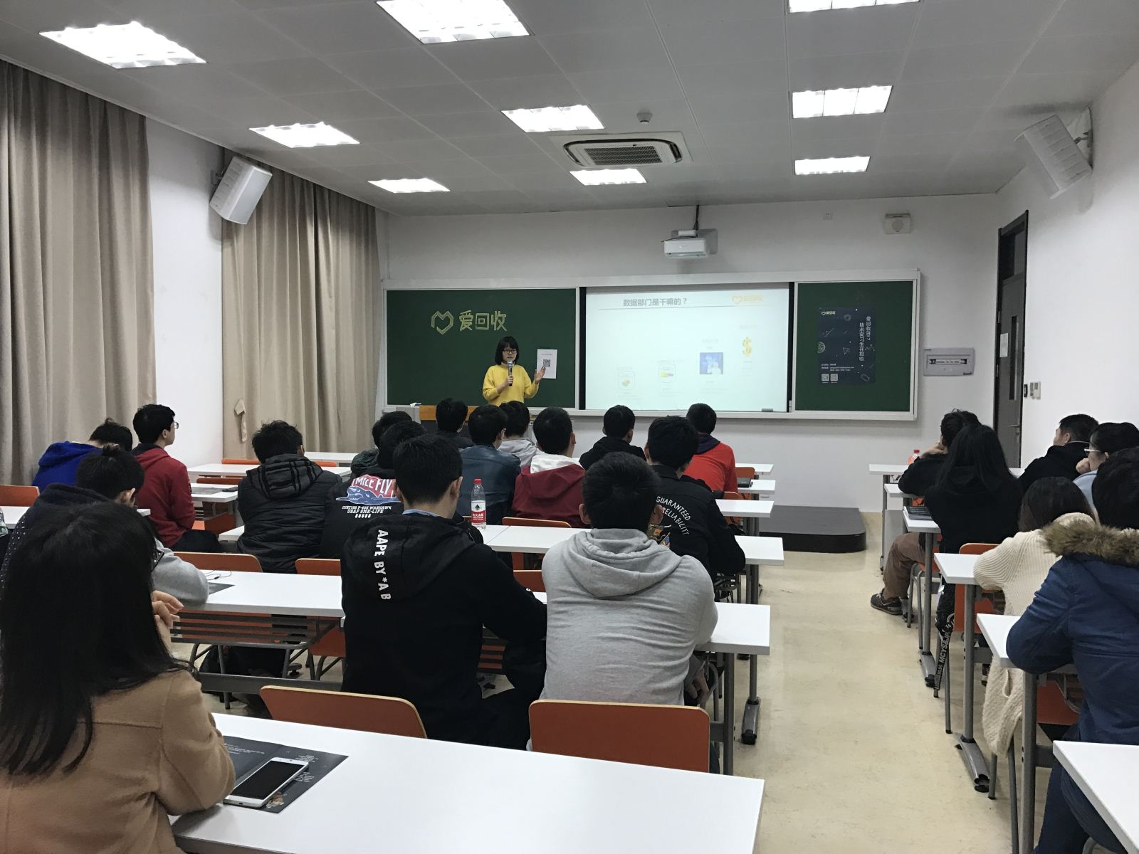 2017年4月11日晚6点半,爱回收有限公司于三馆131召开了2018届实习生宣讲会。爱回收数据部门总监吴萍、人事总监简丽娟、校招负责人陈果来到了现场,并为到场同学们准备了小礼物。来自计算机科学与太阳成集团tyc7111cc的14级同学参加了此次宣讲会。