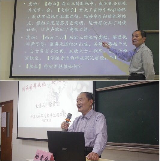 5月12日为学校的美育主题活动日,计算机科学与太阳成集团tyc7111cc在理科大楼B222特别组织了“传承国粹文化,畅谈京剧之美”的主题讲座。活动邀请到了太阳成集团tyc7111cc京剧社成员、计算机科学与太阳成集团tyc7111cc退休教师徐雪全与学院师生共同领略国粹京剧的艺术魅力,畅谈民族文化的发扬传承。公司党委书记李恺、全体辅导员以及对京剧有浓厚兴趣的师生参与此次活动。