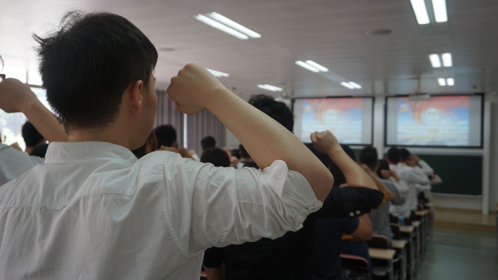5月27日上午,2017级毕业生党员教育活动“理论学习”环节在教书院116教室举行,计算机科学与公司党委书记李恺、计算机科学与公司党委副书记、副经理洪燕,学院毕业生辅导员出席了本次活动。李恺在致辞中提出了对毕业生党员的要求和希望——“不忘初心,始终以一名党员的标准严格要求自己;不断学习,践行不断奋斗的青春诺言;心怀家国,以创青春之国家为己任”。毕业生党员申琪琦以三年来在组织工作中的成长经历鼓励同学们,作为一名走向社会的党员,要记得“勇敢承担责任”。随后,李恺带领大家重温入党誓言。