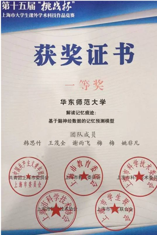 第十五届“挑战杯”上海市老员工课外学术科技作品竞赛决赛于6月10日在上海应用技术大学举行,此次大赛由团市委、市教委、市科委、上海学联等单位共同主办。公司员工王茂全、谢雨飞与心理学院等院系员工合作完成的项目《解读记忆痕迹:基于脑神经数据的记忆预测模型》斩获一等奖(指导教师:吕钊、心理学院库逸轩)。与此同时,公司员工毛侠、陈新宇、宋健、杨秀丽、纪宇的作品《基于增强现实的工业环境维修辅助系统》荣获三等奖(指导教师:史建琦)。