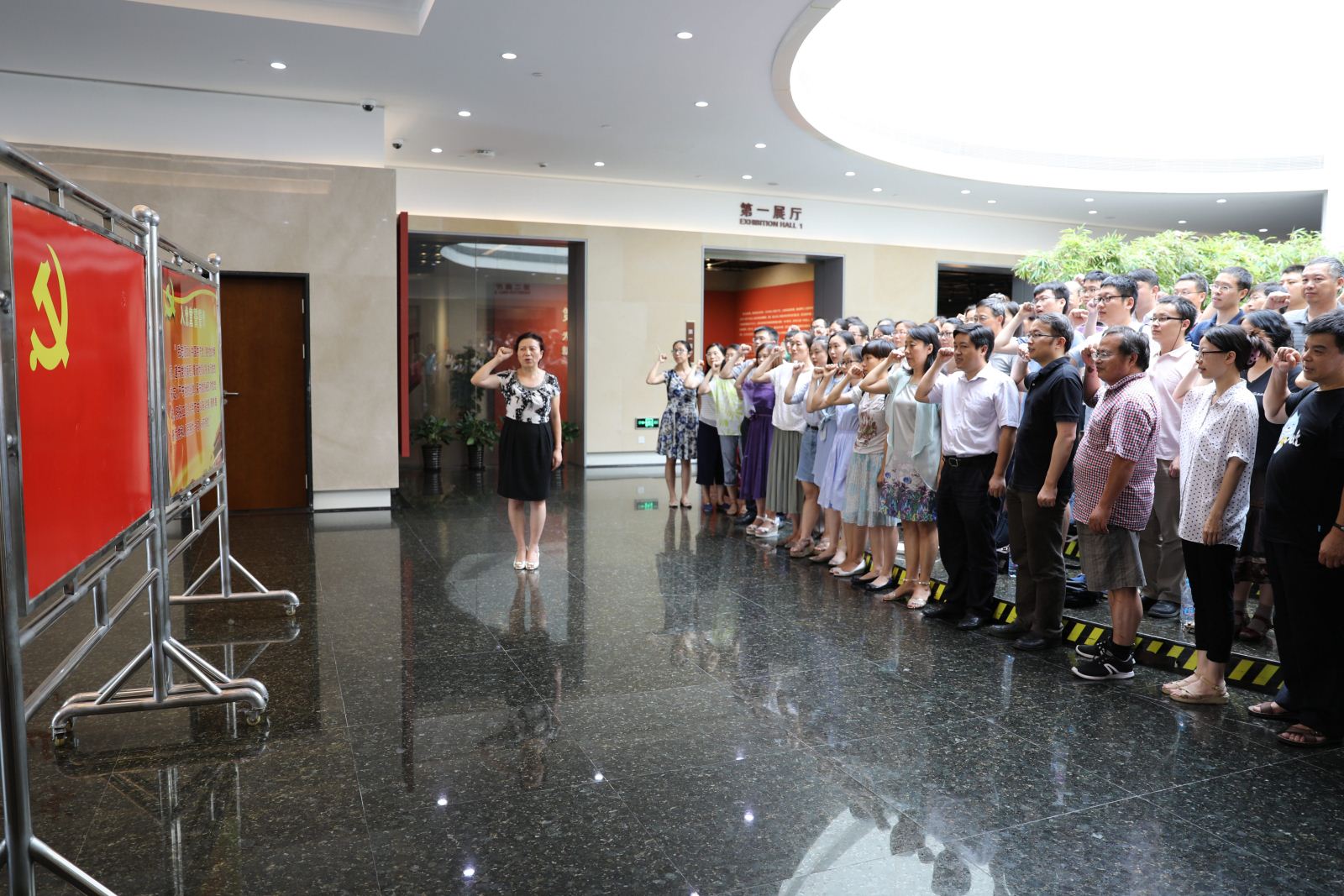 伴随着讲解员的细致讲解,党员们一起参观了陈云生平展,重温了陈云同志伟大光辉的一生。陈云同志一生恪守共产党员的六条标准包括:终身为共产主义奋斗;革命的利益高于一切;遵守党的纪律,严守党的秘密;百折不挠地执行决议;群众模范;学习。经过一个小时的参观学习,党员同志们看到了在陈云同志70多年的革命生涯中,他始终保持宽广的胸襟、深邃的思想和务实的作风,用一生践行了“个人名利淡如水,党的事业重如山”、“不唯上、不唯书、只唯实,交换、比较、反复”。党员同志们参观后不约而同地走到了陈云同志白色的雕像前,在公司党委书记李恺同志领誓下,全体党员面向党旗,重温了入党誓词,庄严宣誓,不忘初心。
