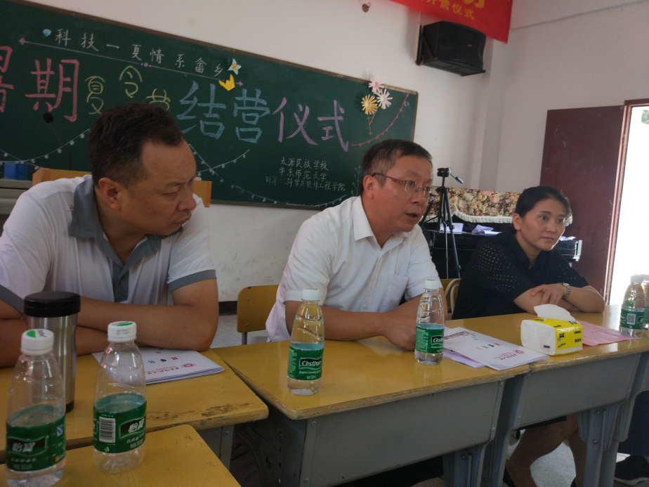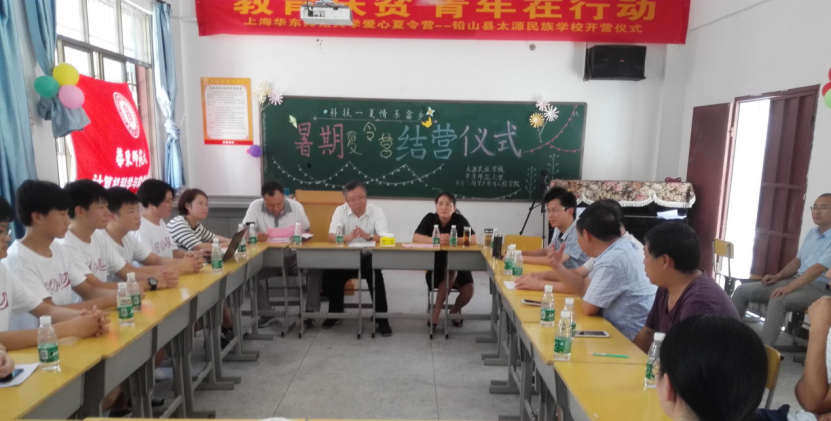铅山县政协副主席雷丹首先对本次暑期支教的志愿者师生表示感谢,她认为这次的夏令营让员工们接触到很多新鲜的事物,以后这类的活动要多加强,让员工们能够接触到外面的世界,能够接受老员工哥哥姐姐的指导和帮助。县人大副主任黄永诚指出这次的支教不仅给孩子们带来了知识,更多的士希望和信心,从而能看到自己人生的更多可能性。铅山县教育局长陈柯表达了对老员工参加暑期支教的赞同,他觉得这样的实践形式无论是对老员工还是当地的员工,都会有收获到课堂中所无法给予的内容和经验。太源畲族乡书记徐饶英结合十年前刚刚毕业时候的经历,分享了刚刚参加完夏令营结营仪式的感受,支教志愿者对孩子们寄语的部分让她感动“外面的世界很大,我们要多出去走走”,她希望未来志愿者们继续支持服务乡村教育。太源民族学校董事长梁思福在感谢上饶市市委、各级教育主管部门之余,对本次暑期支教工作给予了肯定,认为带给学校的不仅是先进的教育理念,还有此次支教队伍的良好精神面貌和认真负责的工作态度。