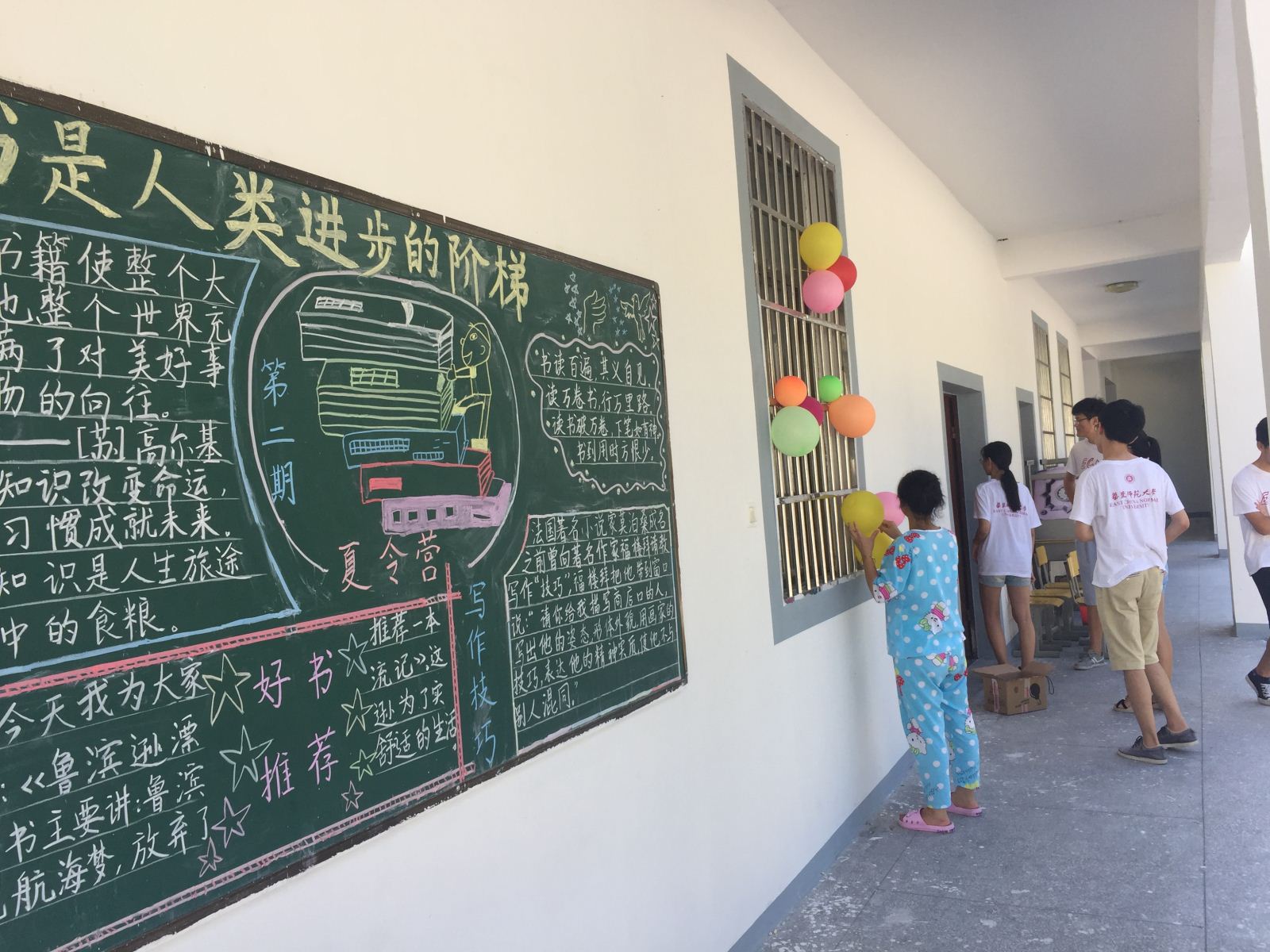 志愿者与孩子们一起将结营仪式的会场布置得五彩斑斓