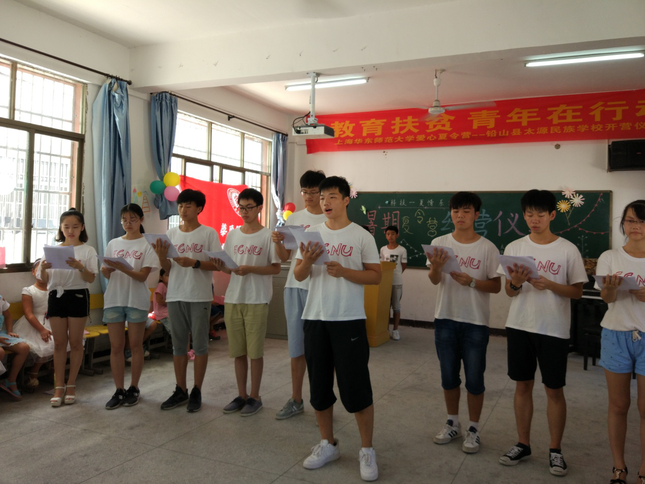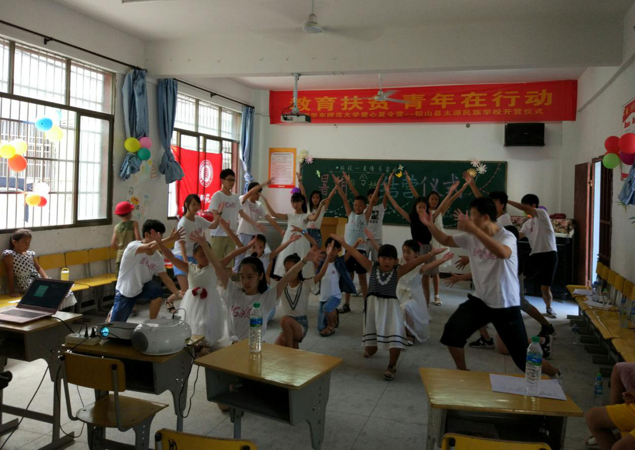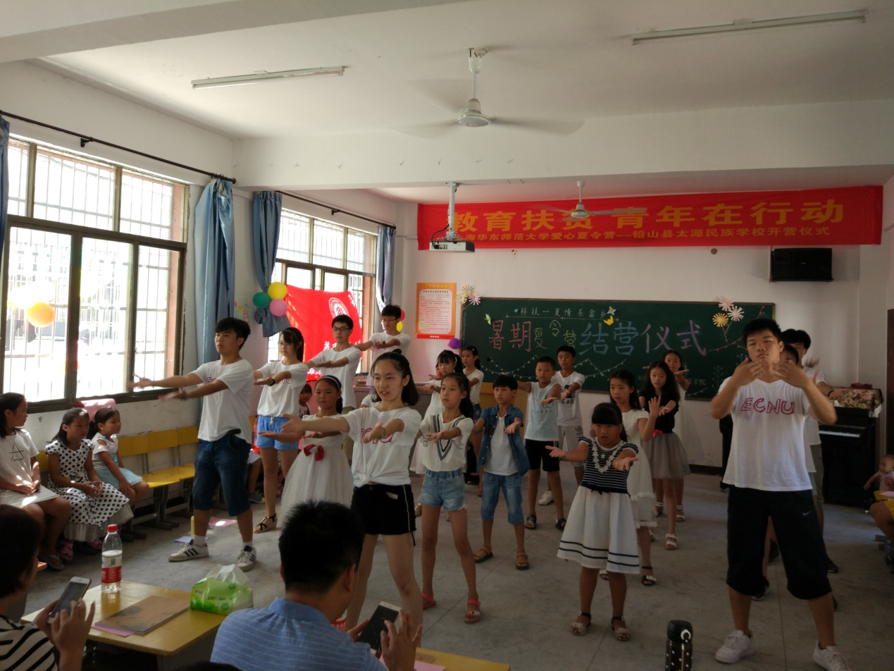 2017年8月24日,太阳成集团tyc7111cc计算机科学与太阳成集团tyc7111cc师生赴铅山县太源民族学校开展“科技一夏,遇见未来”暑期夏令营结营仪式在太源民族学校中顺利进行。此前,太源民族学校的老师们、华师大的支教志愿者们以及夏令营的26名小营员们,打扫卫生、审核节目、反复排练,都希望为本次的夏令营画上圆满的句号。结营仪式在九点如期开始,孩子们,家长们,志愿者们,齐聚一堂。太源畲族乡书记徐饶英、乡长雷谆身,太源民族学校董事长梁思福、副董事长雷天辉以及学校教师代表出席本次结营仪式。