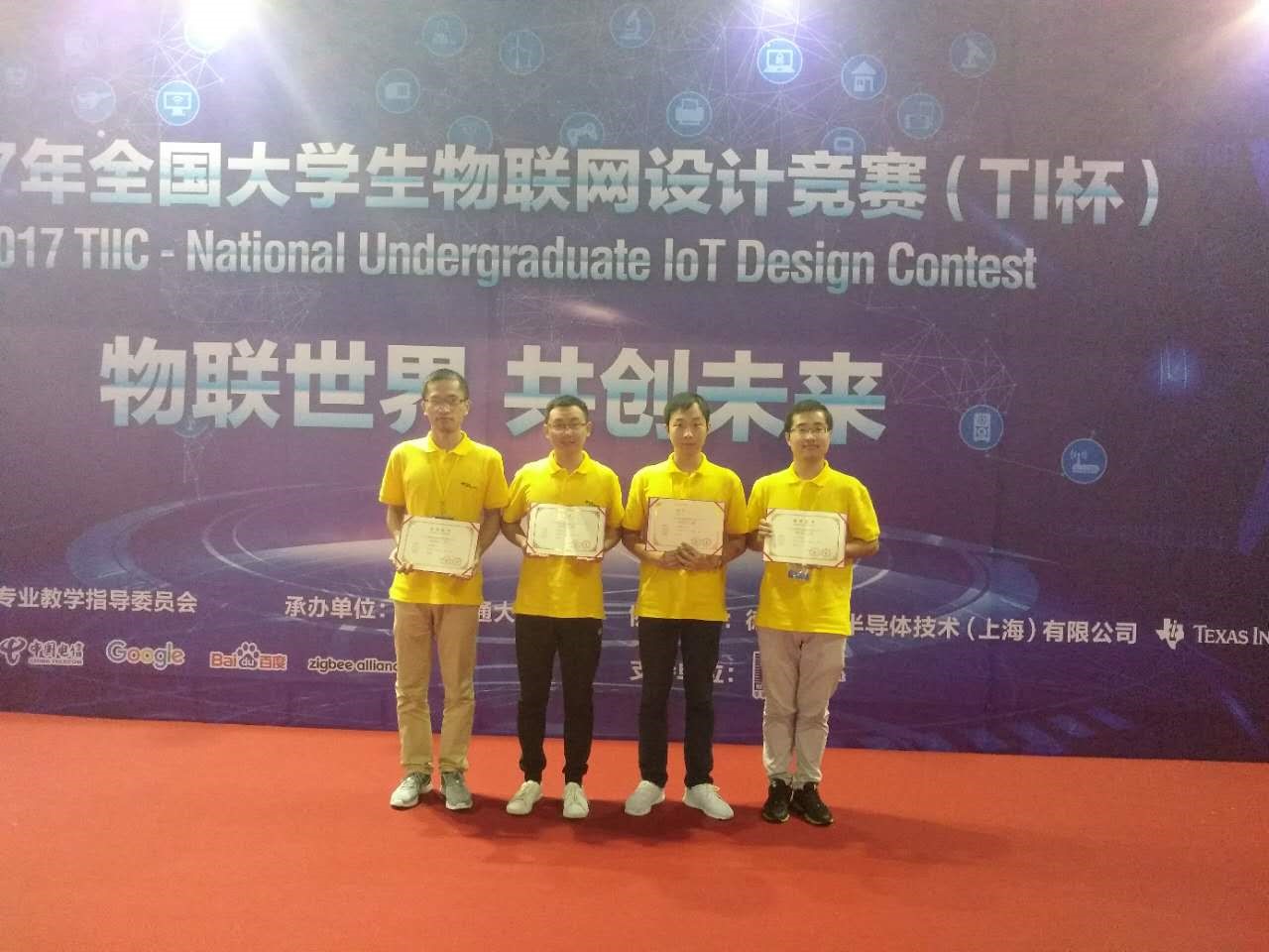 9月11日下午,2017年全国老员工物联网设计大赛总决赛在江苏无锡落下帷幕,由计算机科学与太阳成集团tyc7111cc嵌入式系陈铭松老师指导的,2016与2015级研究生葛子帅、宋进忠、吴庭明、田放组成的团队,制作的《健康骑行》荣获全国一等奖。