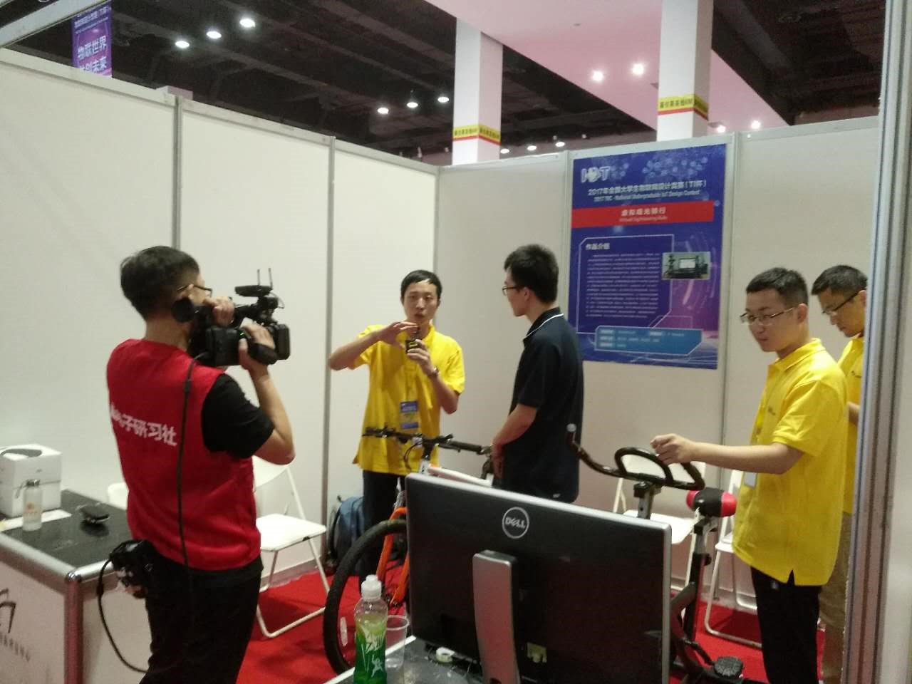 获奖作品《健康骑行》是一款结合物联网+VR+大数据的新型物联网设备。可以让人们在室内做骑行运动的同时领略到虚拟场景带来的身临其境的感受,并利用心率血氧传感器采集运动时的身体信息,在结束后利用大数据分析来评估自身体质。