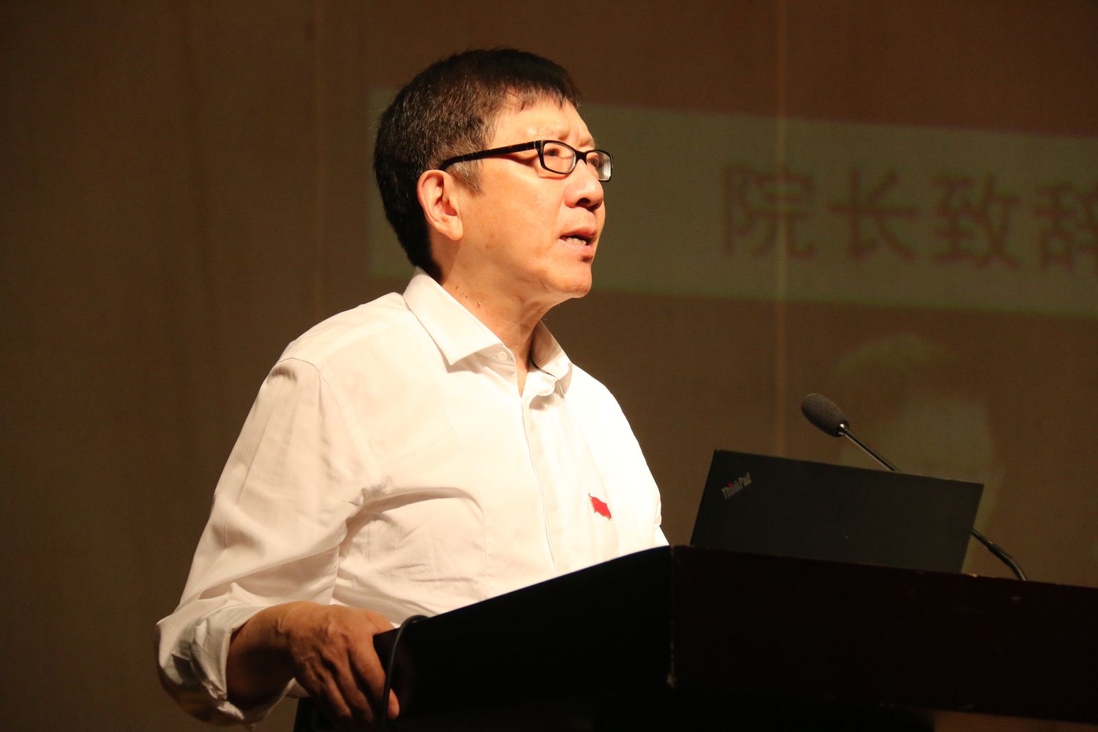 奏唱国歌后,学院经理何积丰院士致辞。何经理强调目前国家正处于经济转型之际,计算机软件行业人才缺口巨大,面对这一趋势,他对新生们提出三点建议:首先要注重跨界人才交流,适应变化多端的时代大潮;其次是要锻炼批判的思维;最后是要注重培养实践能力、思考创新能力。他表示,学院将给予同学提供校外实践机会,致力于打造学科基础扎实、语言能力突出的国际化高端人才,希望同学们能在学院度过充实美好的大学时光。