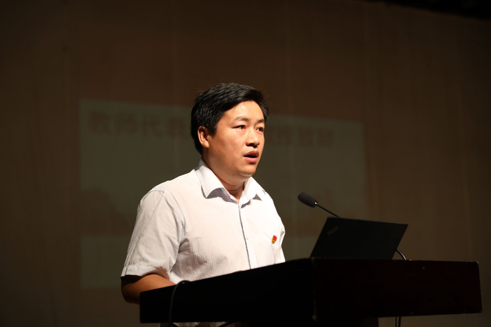 教师代表蒲戈光副经理上台致辞。蒲教授向新同学表达了祝贺和欢迎,同时,向大家提出一个要求,那就是真正学会提问题的能力。他强调,提问题有三个境界,问众人、问天地、问自己,他希望大家通过即将开启的学习生涯,真正掌握提问题的能力,用有限的生命追寻最有意义的事情,最终获得自由。
