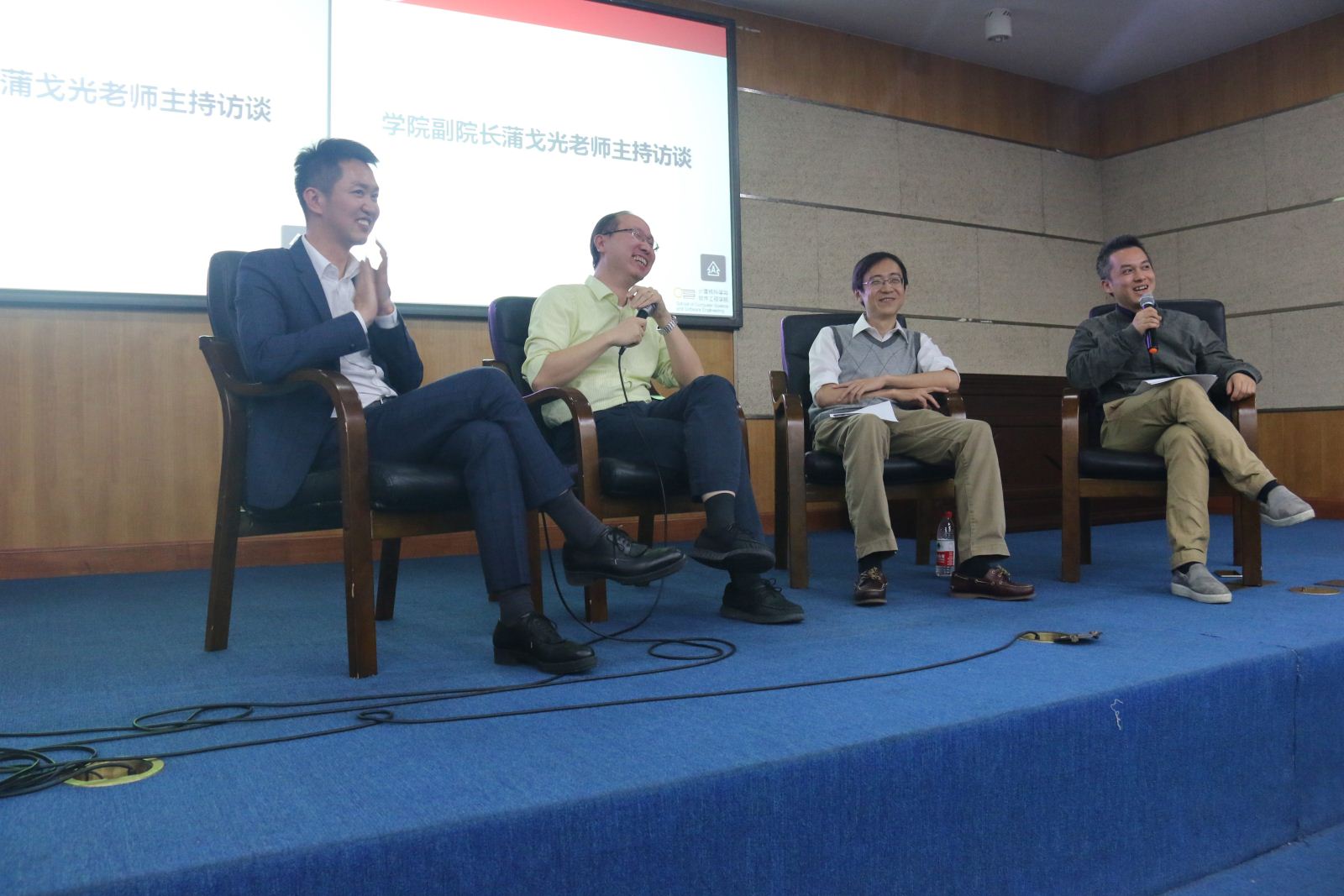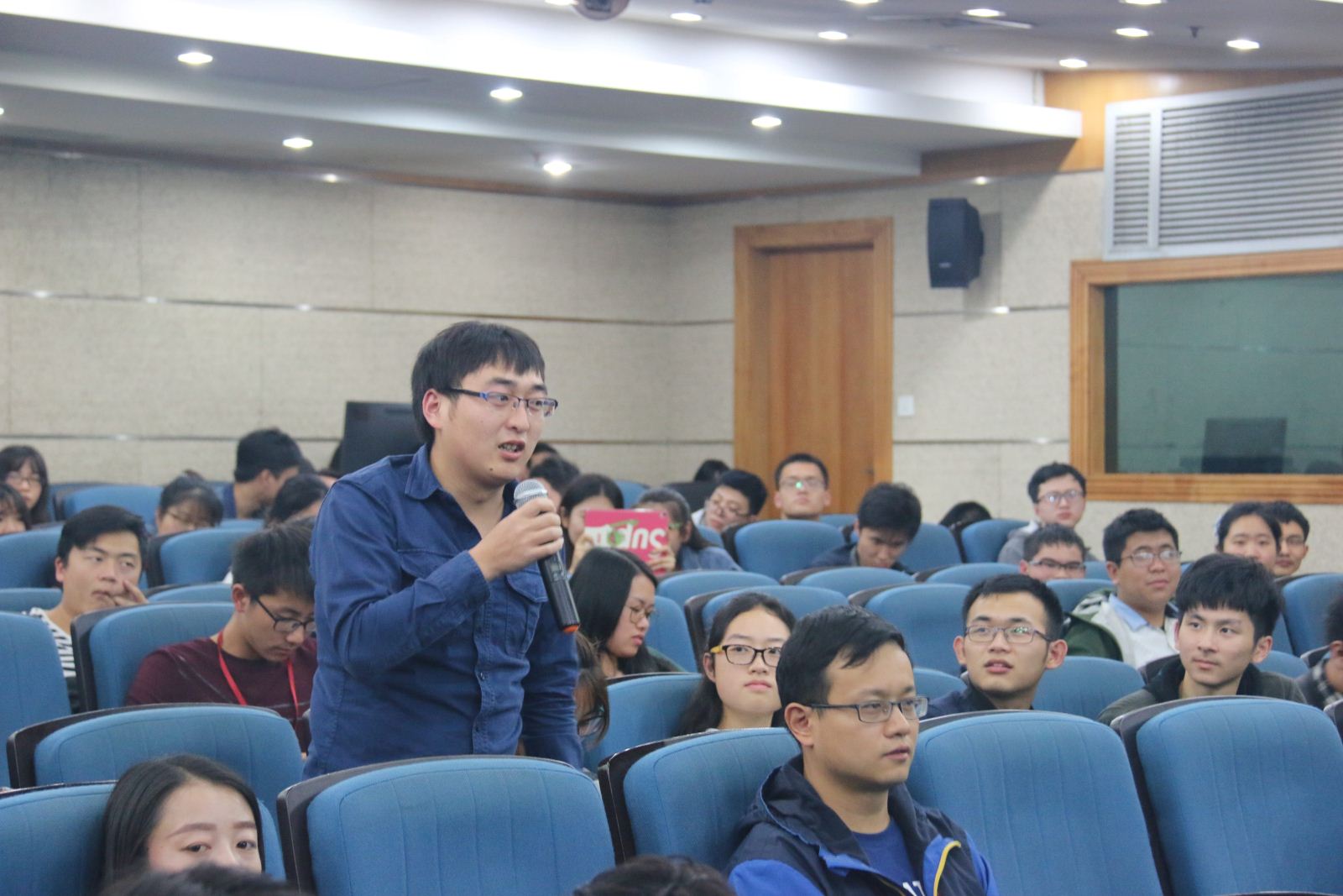 在三位员工精彩的分享后,蒲戈光老师对三位员工进行了简短的访问。三位员工交流了各自在校园时期的学习经历,并为在场的同学们未来学习、生活、求职等方面提出了中肯建议。同学们也纷纷抓住这一机会,与华师大的优秀员工进行面对面的交流,并表示会继续追寻优秀华师学子的脚步不断完善自己,与最先进的思想接轨。