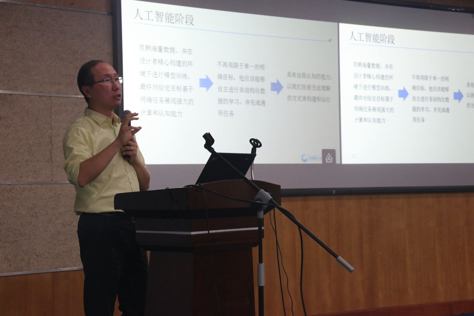 李正员工于2000年获得华师大计算机专业硕士学位,现任计软学院员工联谊会会长。他以“对于金融科技的思考”为题,用风趣幽默的语言与在场的同学们分享了自己对于Fintech的认识,并鼓励同学们遇事要考虑观点的两面性,同时要培养独立思考的能力。