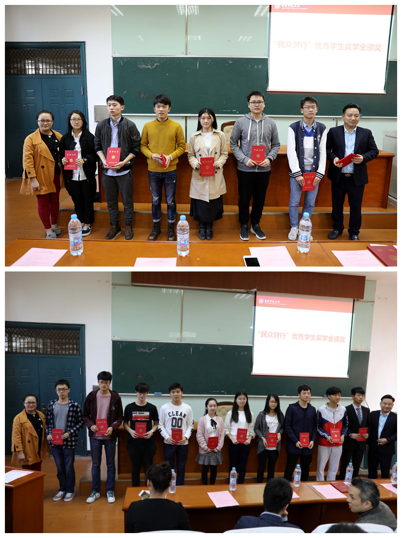 接下来,公司党委副书记洪燕宣布获奖员工名单,民众财行控股集团黄伟及洪燕副书记为获奖同学颁发证书。2015级本科生郭舒怡、2016级本科生毕冉分别代表获奖员工和团队发言,两位同学对民众财行控股集团企业设立此项奖学金表达真挚感谢,也同样感恩学院为员工的全面发展所创造的各项平台和机会。他们从校园文化和社会实践不同的角度诠释着自己对老员工活的思考,不论是“科技一夏,遇见未来”暑期支教志愿者还是从学习、工作、兴趣爱好融会贯通互为一体,多方位的发展自我,两位学子表达着要珍惜现在幸福的生活,享受着最好的社会资源和拥有优越条件的同时,不仅要努力发展自己,更要思考如何利用所学去帮助他人,为民族和国家的富强发展不懈努力。
