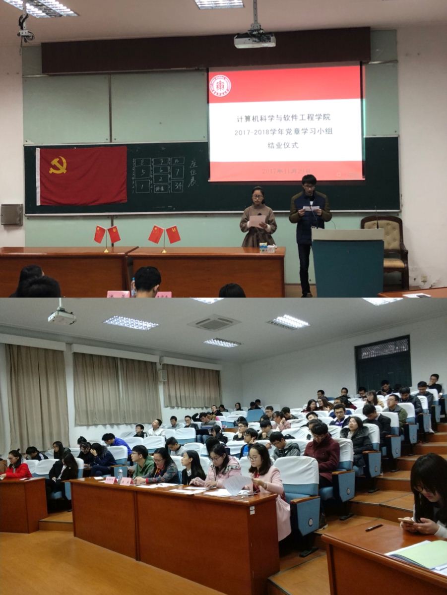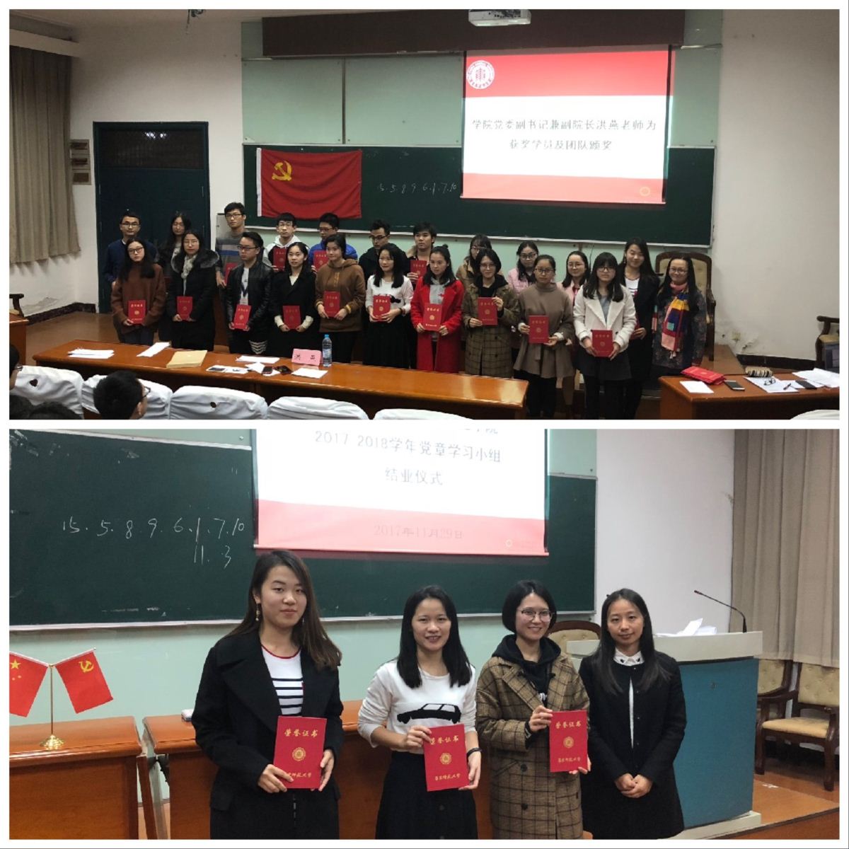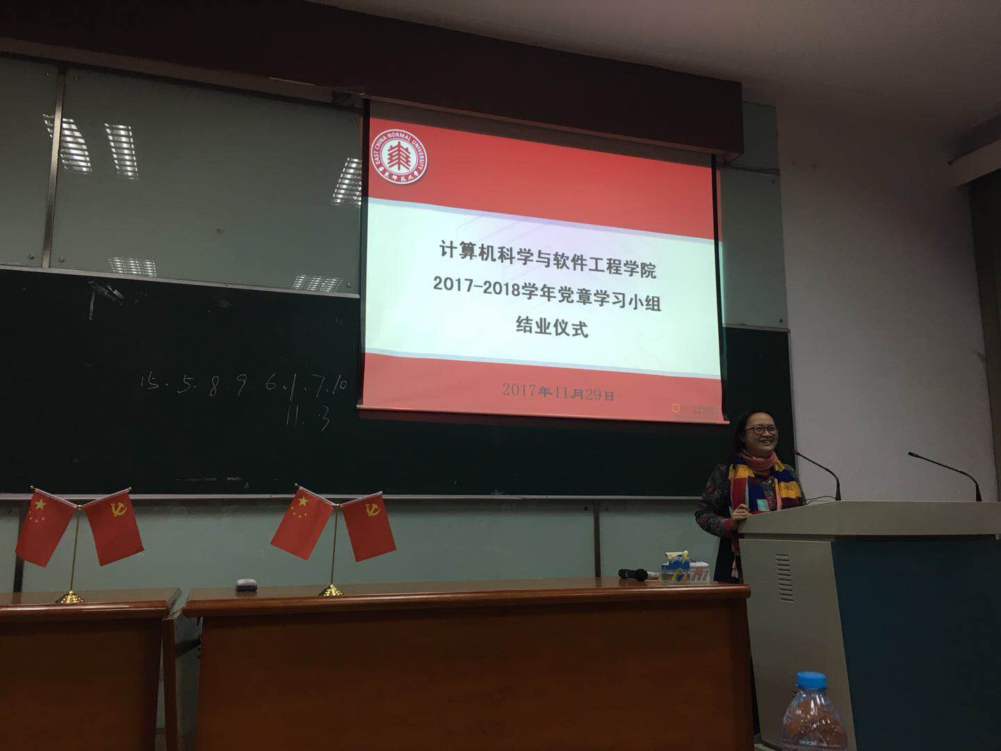 为进一步弘扬十九大精神,紧随党的前进步伐,同时牢记党的奋斗历程,增加员工对党章党史的了解,增强员工爱国爱党的意识,2017年11月29日,党章学习小组成果展示暨结业典礼在数学馆113教室顺利举行。学院常务副经理王长波老师、党委副书记兼副经理洪燕老师、17级软件工程本科生辅导员朱莺老师及党章学习小组全体学员出席了本次活动。结业仪式由鲁梦洁同学和杨浩同学主持。