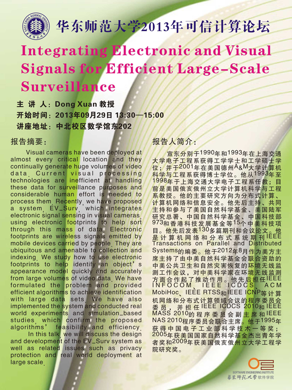 讲座题目:可信计算论坛:Integrating Electronic and Visual Signals for Efficient Large-Scale Surveillance