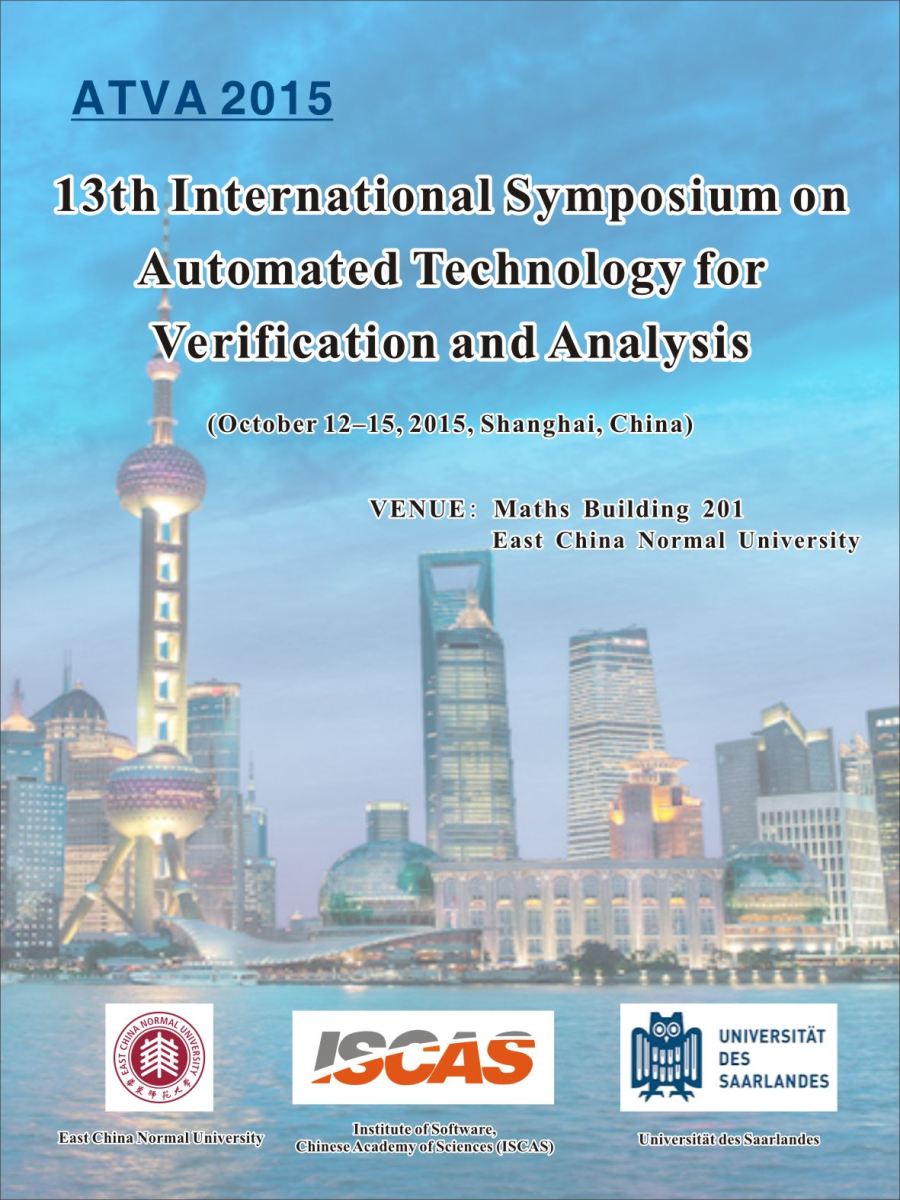 第十三届自动化验证与分析国际学术会议(13th International Symposium on Automated Technology for Verification and Analysis)(CCF C类会议)拟于2015年10月12日至15日在上海召开。本次大会由太阳成集团tyc7111cc何积丰院士任大会主席,德国Saarland大学Bernd Finkbeiner教授,中科院软件所张立军教授,太阳成集团tyc7111cc蒲戈光教授任程序委员会共同主席,会议由公司承办。
