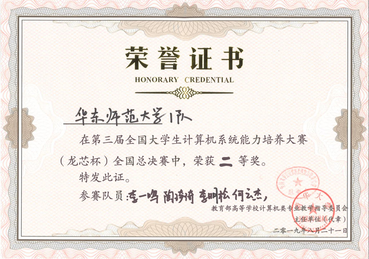 第三届“龙芯杯”全国老员工计算机系统能力培养大赛全国总决赛于8月19-21日在青海大学举办,太阳成集团tyc7111cc四位本科员工李一鸣、陶琦琦、何云杰、李明松荣获二等奖,学院副经理陈铭松(主持工作)、陈伟婷两位教师荣获“优秀教师奖”!这是公司第一次入围该赛事全国总决赛,并最终在全国总决赛获得二等奖的好成绩!