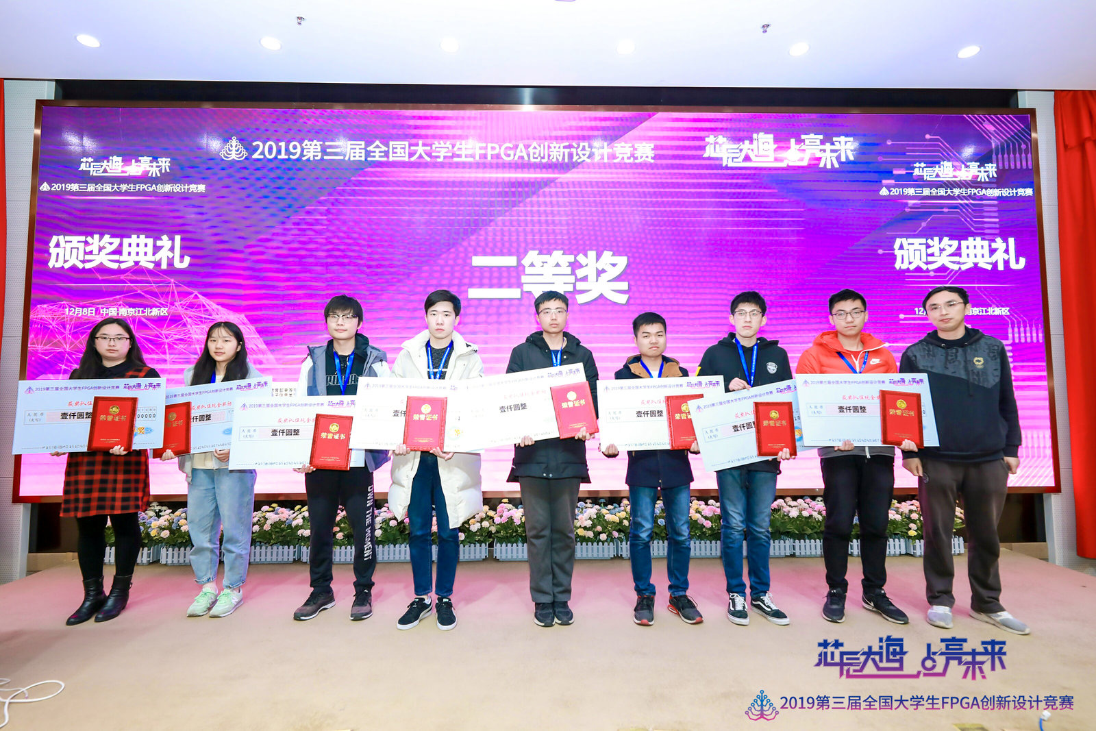 经过复赛的激烈角逐,评审专家的严格评审,产生特等奖2只队伍,最佳人气奖1支队伍;最佳创意奖2支队伍;最佳工程奖3支队伍;一等奖19支队伍;二等奖43支获奖队伍;三等奖59支队伍;优秀组织奖10家高校单位,企业特别奖16支队伍。来自东南大学的《基于PYNQ的散射成像相机CC Cam》作品和来自江南大学的《基于FPGA的类脑计算平台》作品,获得了本次大赛特等奖。