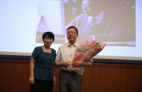 梅兵副董事长为何积丰院士颁发从教五十周年纪念奖杯