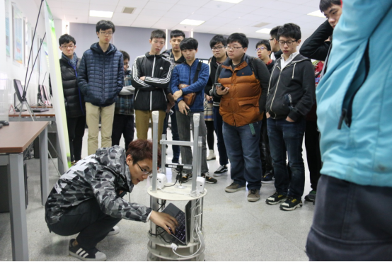 The delegation took a tour to the School exhibition room and watched the student robot demonstration, and listened to the introduction about the student enrollment and employment of ECNU.