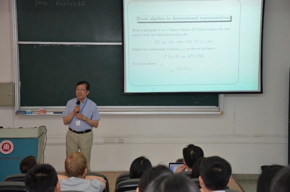 Academician Jifeng HE, dean of the School of Computer Science and Software Engineering, gave a special report entitled "A New Roadmap on Linking Theories of Programming", discussing the test theory in the unified programming theory and proposing a new roadmap for link programming theory.