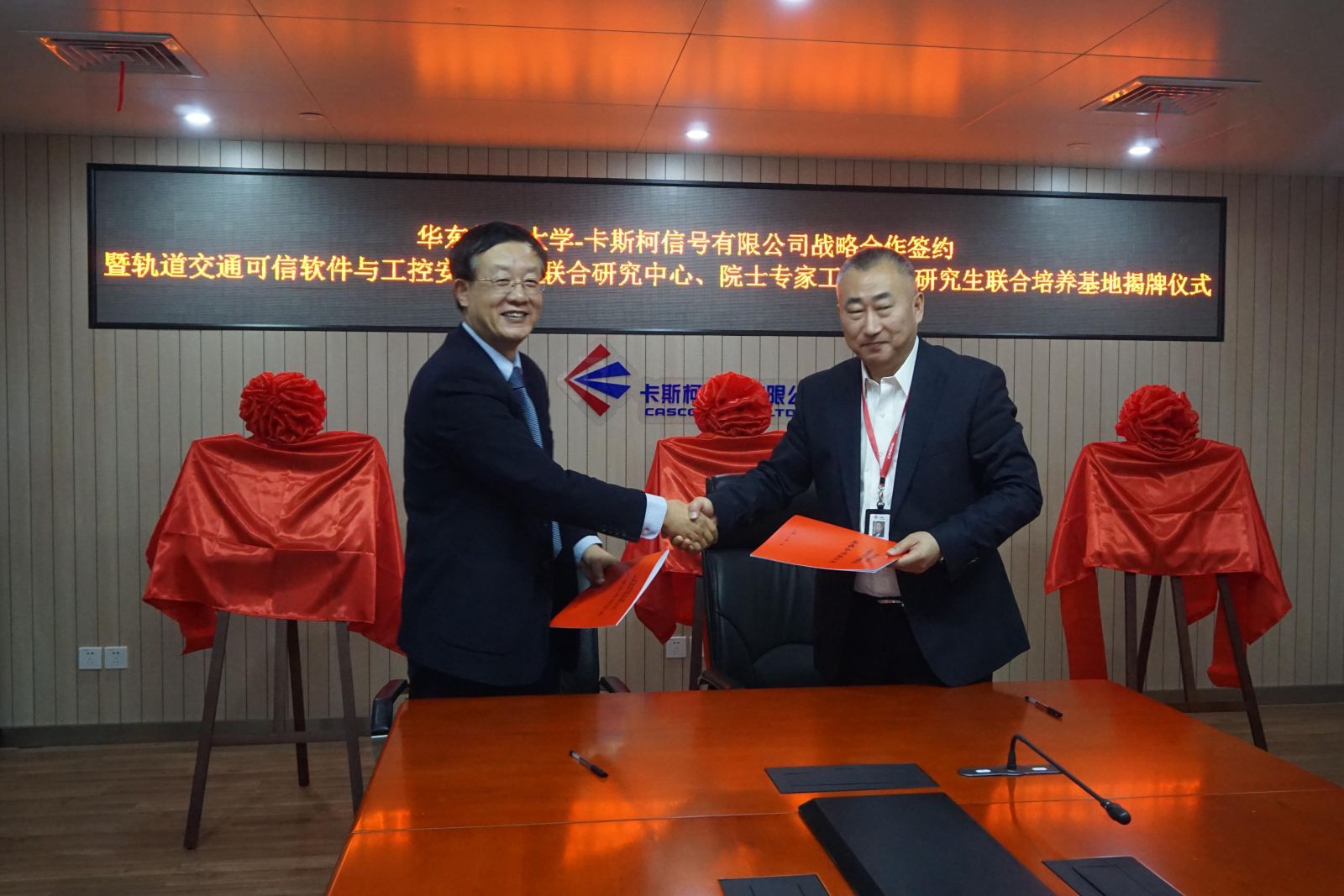 The signing ceremony of the cooperation was hosted by Vice President Jianhua Jiang from Casco. At the ceremony, University Vice President Zhibin Li highly praised the important contribution made by Casco Signal Co., Ltd. to the rail transit public utilities. ECNU and Casco has been in close cooperation for a long time, and this joint venture would deepen the collaboration between the two sides and further promote the industry development.