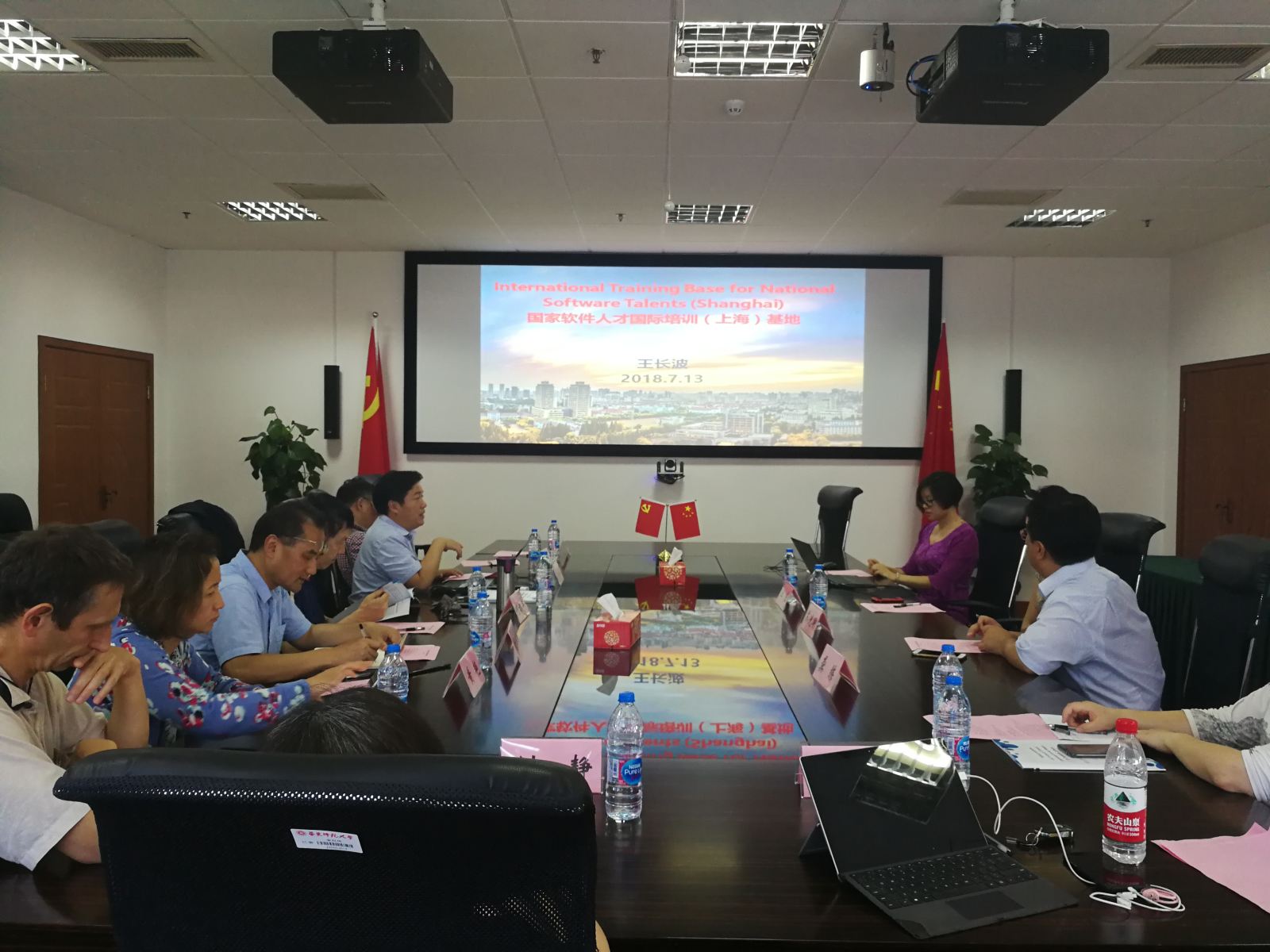 On July 13, delagation from China International Talent Exchange Foundation visited the School of Computer Science and Software Engineering. Prof. Jifeng He, dean of the School, and Prof. Changbo Wang, executive vice-dean of the School, and deputy director Mr. Zhihua Huang from the University International Exchange Office presented.
